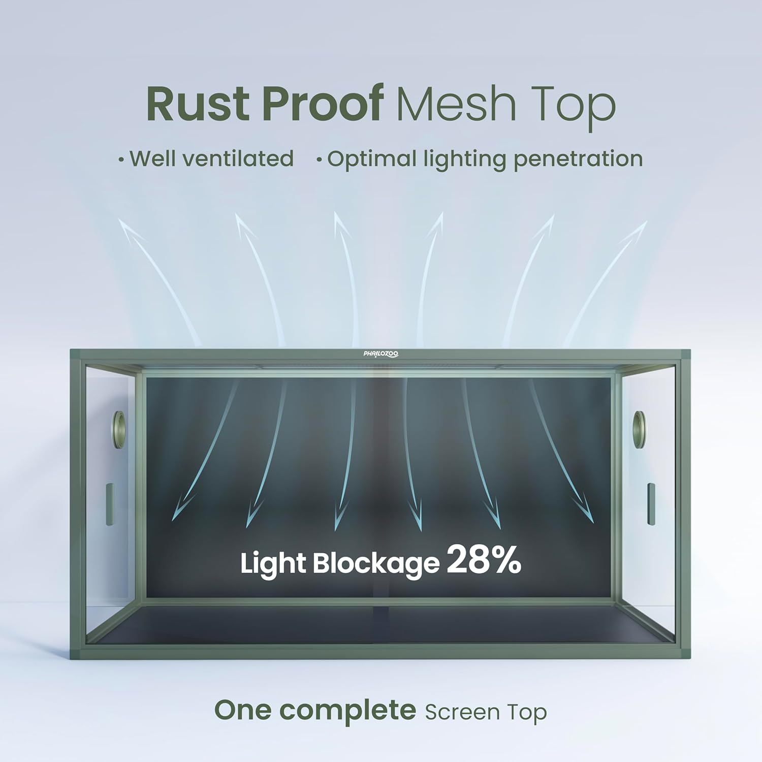 • 【Highly Adaptive】Well-lit screen top with only 28% blockage. Compatible with many reptile accessories and equipment, such as heat lamps for reptiles, reptile humidifiers, reptile misters, reptile foggers, reptile UVA and UVB. Our reptile terrarium is great for holding temps and humidity.