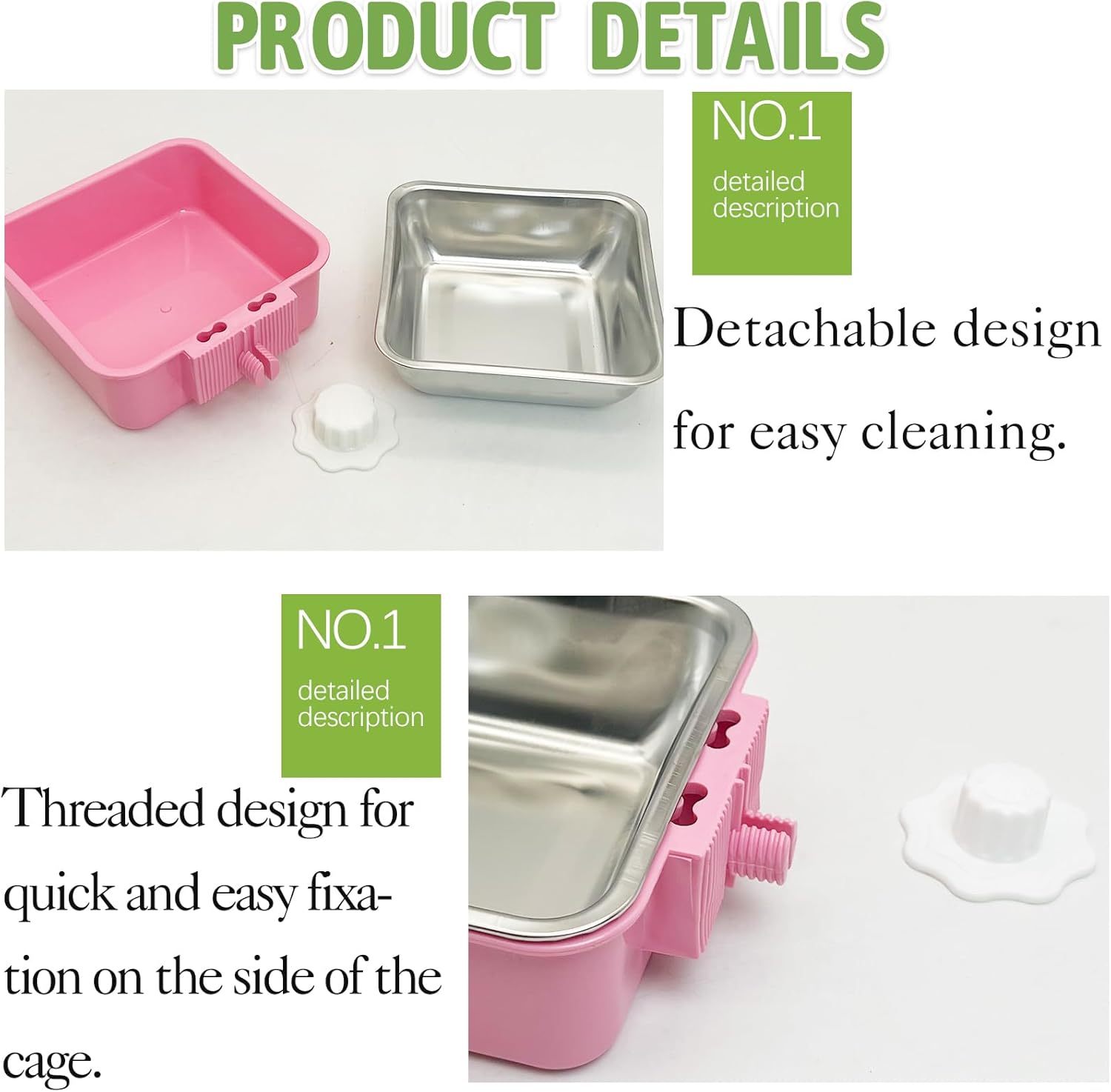 kathson Crate Dog Bowl, Removable Stainless Steel Hanging Pet Kennel Cage Bowl Food & Water Feeder Coop Cup for Puppy, Cat, Rabbit,Guinea Pigs 3pcs Square(Blue,Green,Pink)