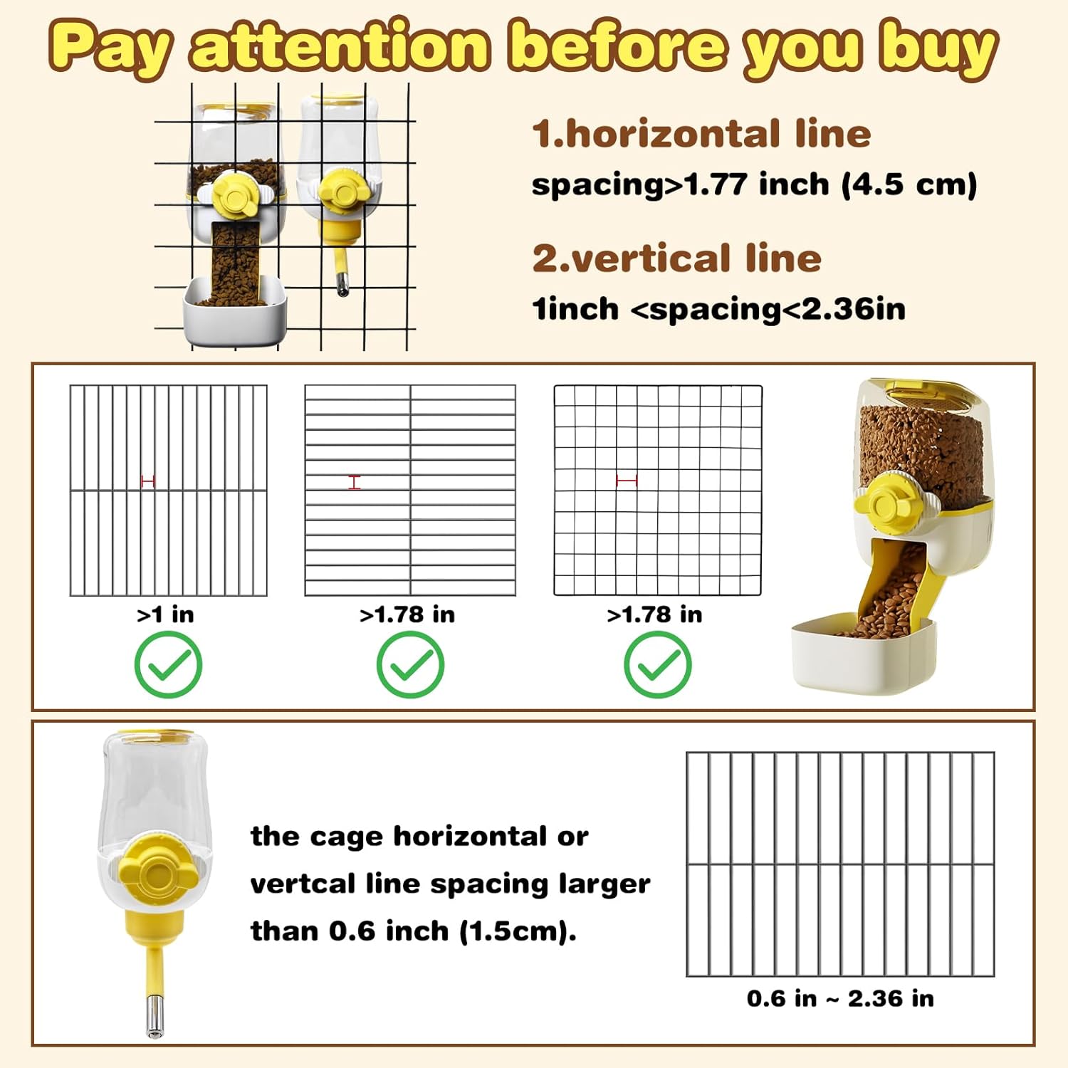 - Large Capacity: Rabbit pellet feeder measures 4.33 x 7.87 x 9.05 inches and the bunny water bottle measures 3.54 x 4.33 x7.87 inches and holds approximately 2.4 pounds of food and approximately 0.9 litres of water, so you don't have to worry about your pet getting hungry or thirsty while you're away at work or play